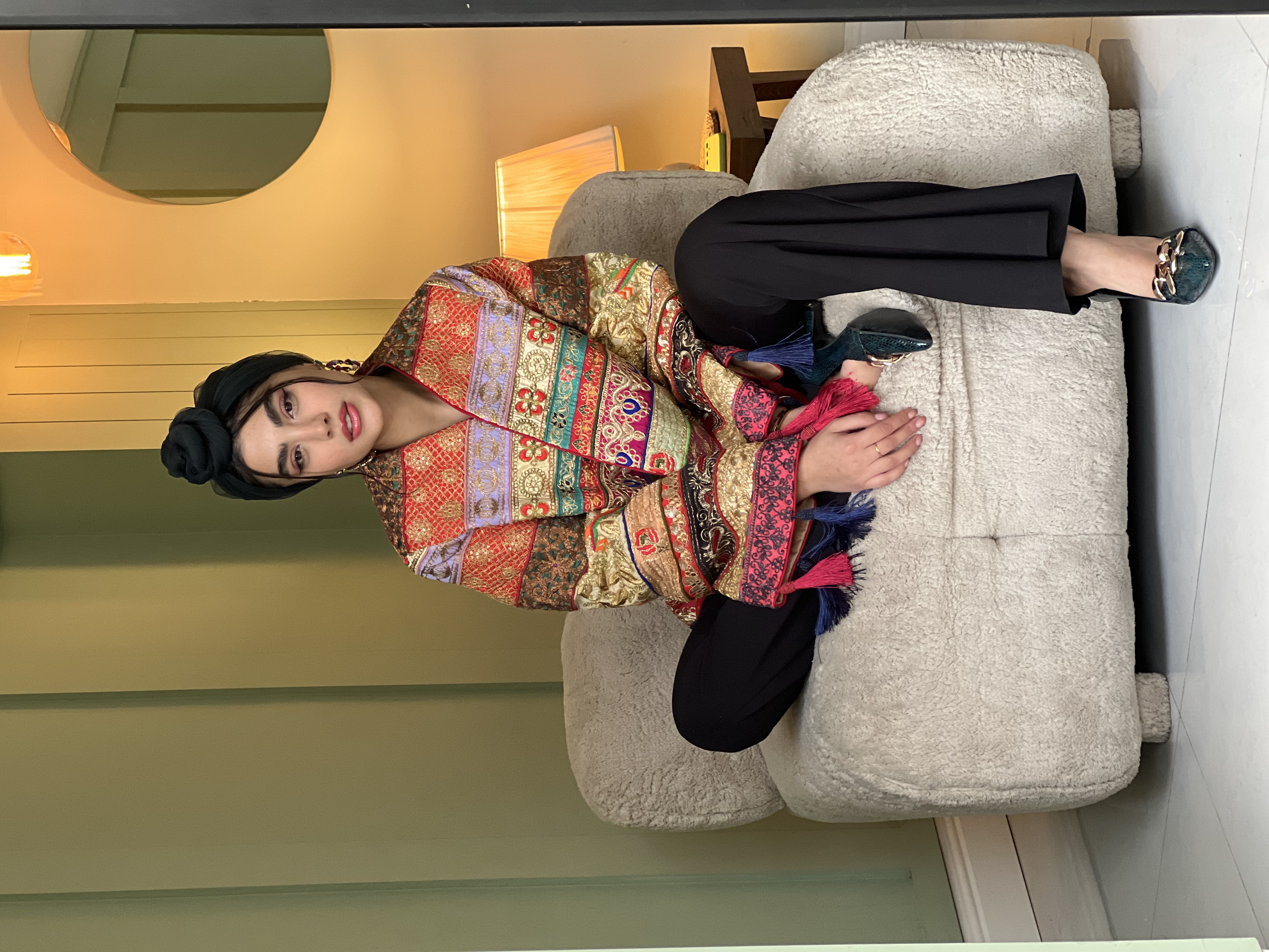 این کت چهلتکه از جنس تافته سوزندوزی با طراحی سنتی و رنگهای چشمگیر، گزینهای ایدهآل برای شب یلدا، مراسم آیینی و استایلهای خاص است. آستین کت به دو صورت مخمل و تافته میباشد. فرم آزاد و کوتاه کت، آن را برای عروسهایی که به دنبال پوشش سنتی و متفاوت برای شب یلدا هستند، بسیار جذاب میکند. در عین حال، این کت یلدایی برای خانمهایی که بدون عروس بودن نیز میخواهند یک استایل اصیل، سنتی و متمایز داشته باشند، انتخابی عالی است. ترکیب چهلتکه و سوزندوزیهای ظریف، این کت را به لباس مناسبی برای جشنها، عکاسی یلدایی و مهمانیهای خاص تبدیل میکند.